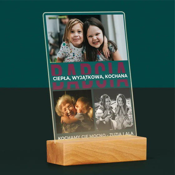 116,99 zł129,99 złCena jednostkowa /NiedostępneFotokolaż: Babcia - Wydruk na szkle akrylowym w ramce LED