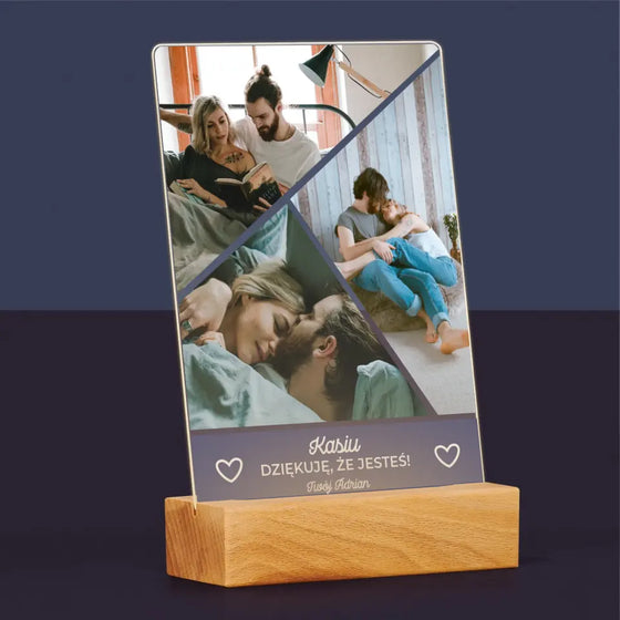 54,99 złCena jednostkowa /NiedostępneFotokolaż: Dziękuję, Że Jesteś - Wydruk na szkle akrylowym LED