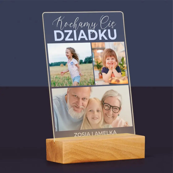 54,99 złCena jednostkowa /NiedostępneFotokolaż: Kochamy Cię Dziadku - Wydruk na szkle akrylowym LED