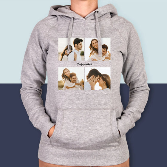 Fotokolaż: 4 Zdjęcia i Podpis - Bluza damska z kapturem