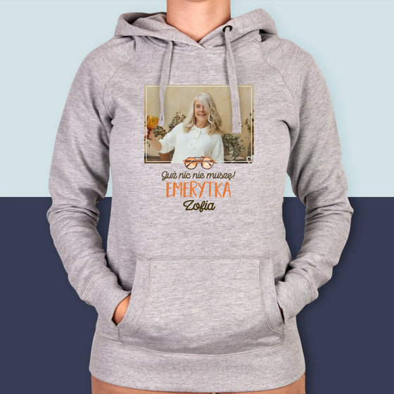 199,99 złCena jednostkowa /NiedostępneZdjęcie i Podpis: Nic Nie Muszę! Emerytka - Bluza damska z kapturem