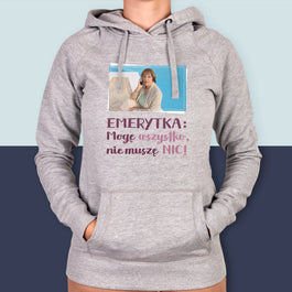 199,99 złCena jednostkowa /NiedostępneZdjęcie i Podpis: Emerytka Mogę Wszystko - Bluza damska z kapturem