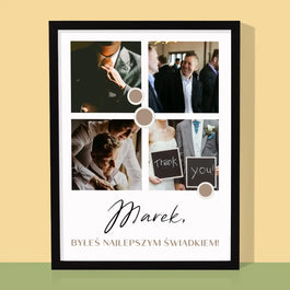 89,99 zł99,99 złCena jednostkowa /NiedostępneFotokolaż: Dziękuję! Dla Świadka - Personalizowany Obraz na płótnie