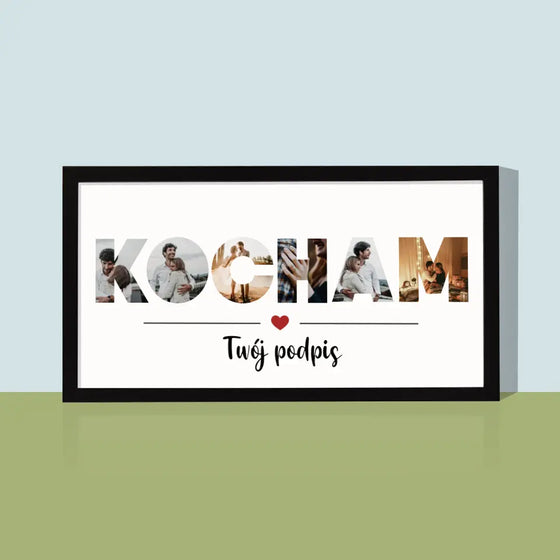 89,99 zł99,99 złCena jednostkowa /NiedostępneSłowo Ze Zdjęć: Kocham - Wydruk obramowany 20x40 - Poziom