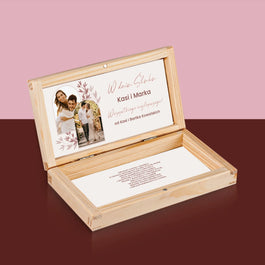 39,99 złCena jednostkowa /NiedostępneZdjęcie i Podpis: Ślubne Zdjęcie Życzenia - Drewniane pudełko na pieniądze