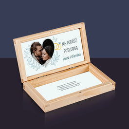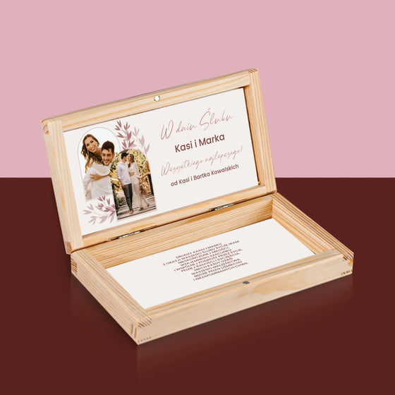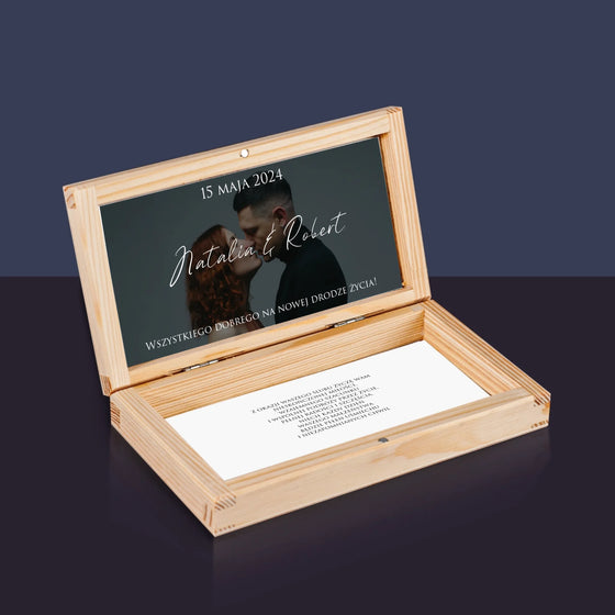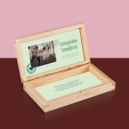 39,99 złCena jednostkowa /NiedostępneZdjęcie i Podpis: Ślubna Pocztówka - Drewniane pudełko na pieniądze
