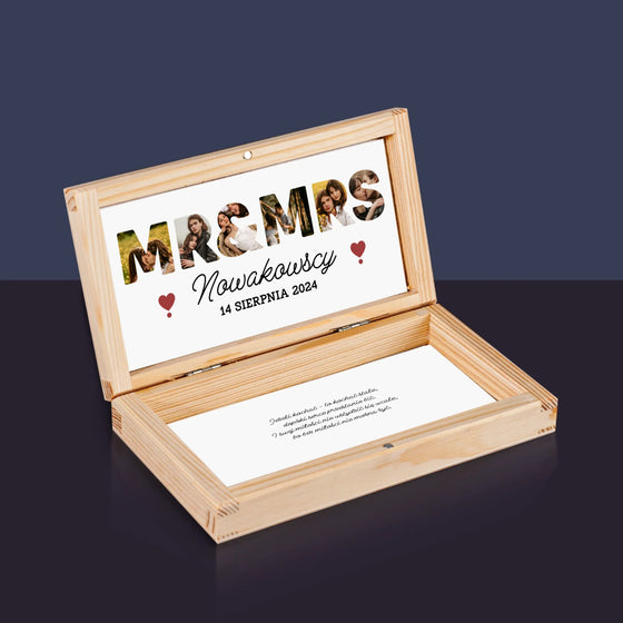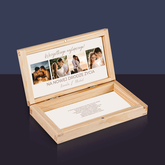 39,99 złCena jednostkowa /NiedostępneFotokolaż: w Dniu Ślubu - Drewniane pudełko na pieniądze