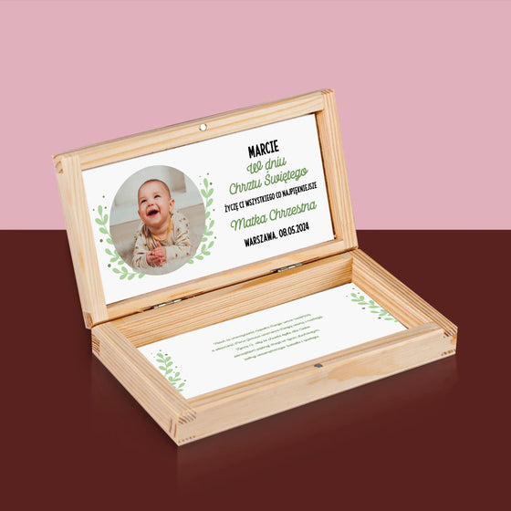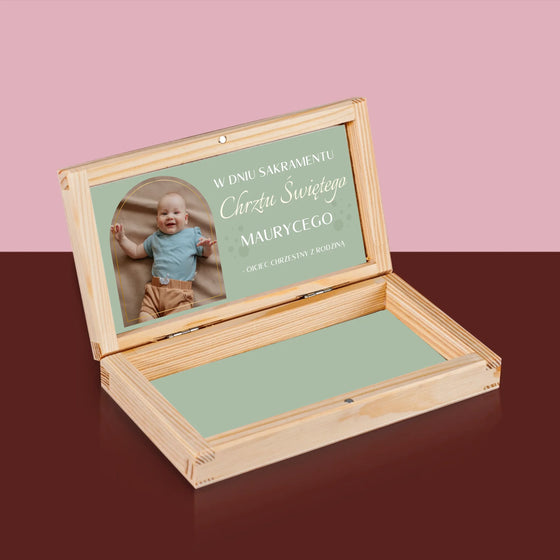 39,99 złCena jednostkowa /NiedostępneZdjęcie i Podpis: z Okazji Chrztu Świętego - Drewniane pudełko na pieniądze