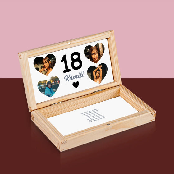 Fotokolaż: 18 Serca - Drewniane pudełko na pieniądze