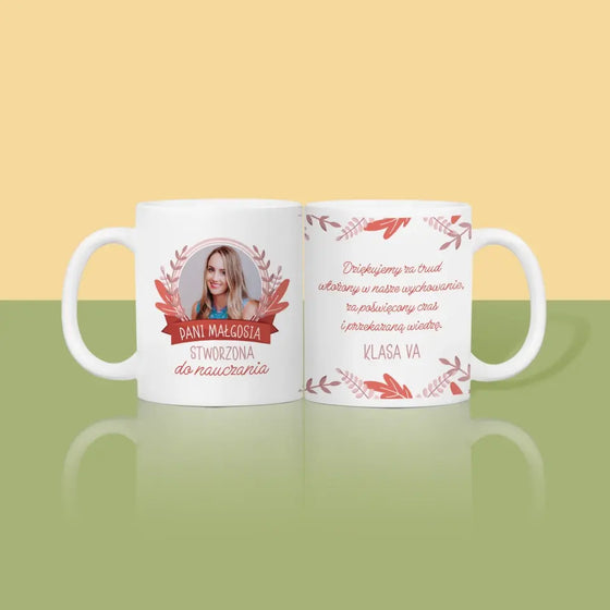 Zdjęcie i Podpis: Stworzona Do Nauczania - Kubek z nadrukiem