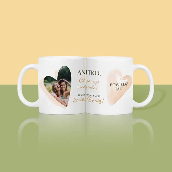 39,99 złCena jednostkowa /NiedostępneZdjęcie i Podpis: Wymarzona Świadkowa - Kubek serce