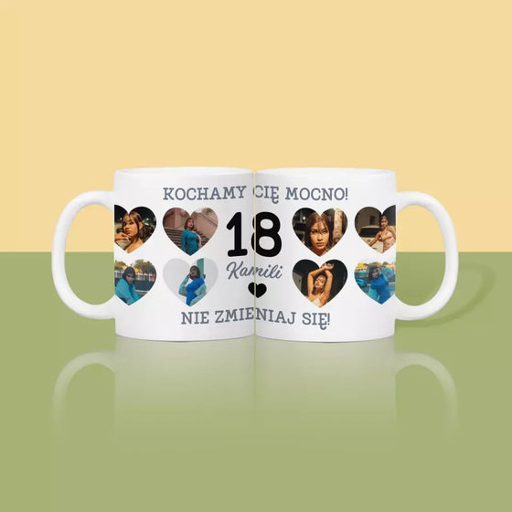 54,99 złCena jednostkowa /NiedostępneFotokolaż: 18 Serca - Kubek z nadrukiem
