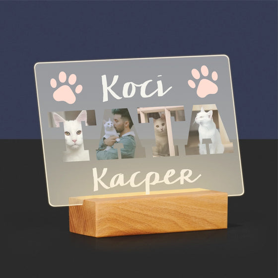 84,99 złCena jednostkowa /NiedostępneSłowo Ze Zdjęć: Koci Tata - Wydruk na szkle akrylowym LED Poziom
