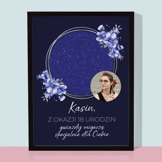 62,99 zł69,99 złCena jednostkowa /NiedostępneMapa Gwiazd: Gwiazdy Migoczą z Okazji Urodzin - Wydruk obramowany - Pion