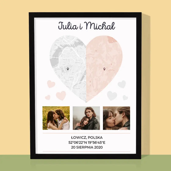 62,99 zł69,99 złCena jednostkowa /NiedostępneMapa Miasta: Dwie Połówki Serca - Wydruk obramowany - Pion
