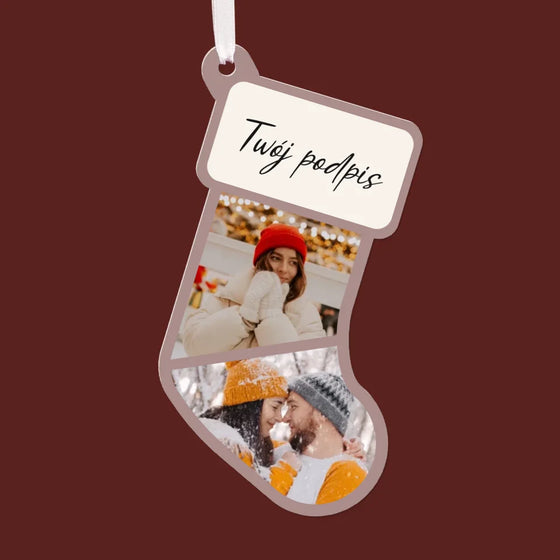 99,99 złCena jednostkowa /NiedostępneFotokolaż: 2 Zdjęcia i Podpis - Bombka akrylowa skarpeta