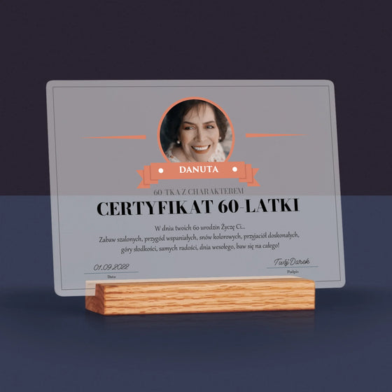 129,99 złCena jednostkowa /NiedostępneCertyfkat: Certyfikat 60-Latki - Wydruk na szkle akrylowym - poziom