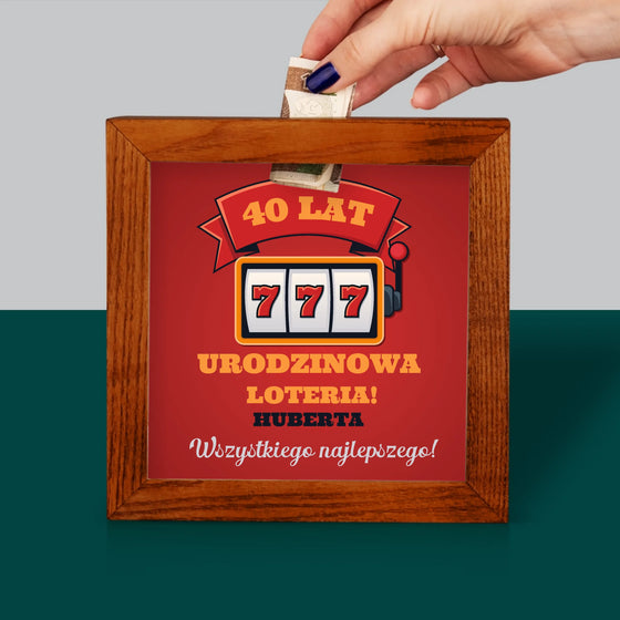 79,99 złCena jednostkowa /NiedostępneImię I Podpis: Urodzinowa Loteria Jackpot - Drewniana skarbonka