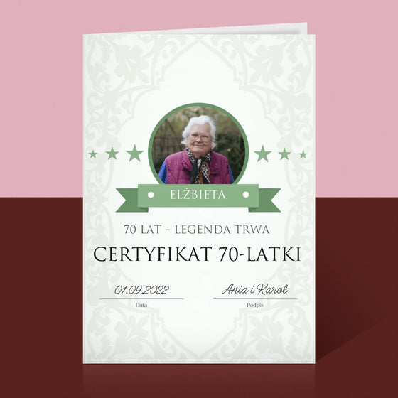 19,99 złCena jednostkowa /NiedostępneCertyfkat: Certyfikat 70-Latki - Kartka z życzeniami