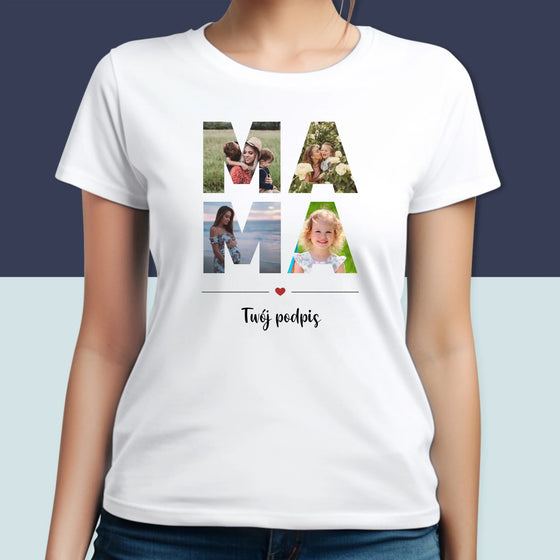Zdjęcie i Podpis: Kochamy Cię Mamo - Personalizowana Koszulka Damska