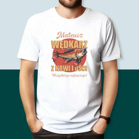 Imię i Podpis: Wędkarz z Krwi i Ości - Personalizowana Koszulka Męska