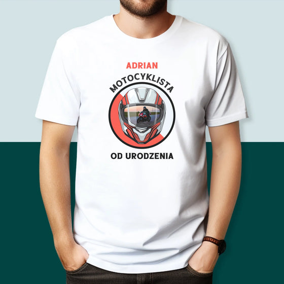69,99 złCena jednostkowa /NiedostępneZdjęcie I Podpis: Motocyklista Od Urodzenia - Personalizowana Koszulka Męska