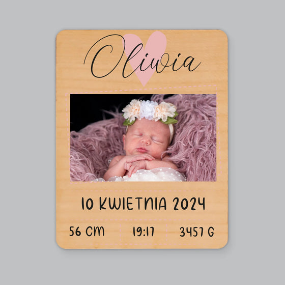 19,99 złCena jednostkowa /NiedostępneBrak opiniiMetryczka Dziecka: Serduszko Dziewczynka - Magnes drewniany
