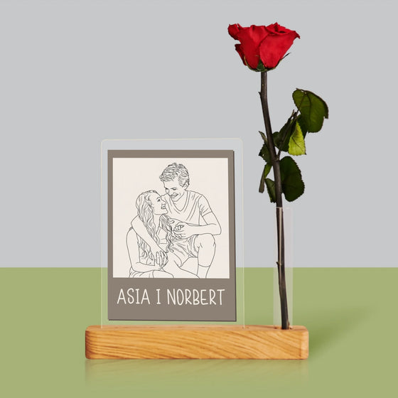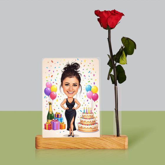 Karykatura: Urodzinowa - Wydruk na szkle akrylowym z różą