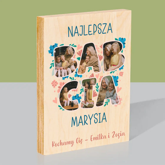 99,99 złCena jednostkowa /NiedostępneFotokolaż: Babcia Kwiaty - Wydruk na drewnie - Poziom