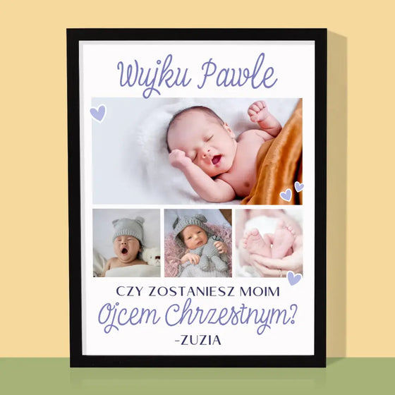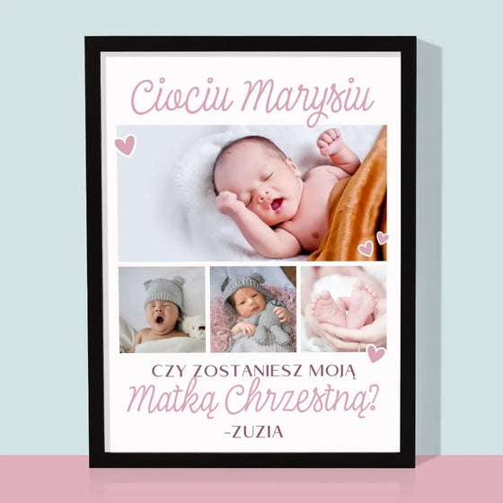69,99 złCena jednostkowa /NiedostępneFotokolaż: Czy Zostaniesz Moim Chrzestnym - Wydruk obramowany - Pion