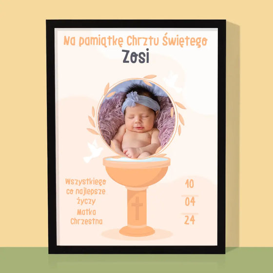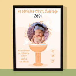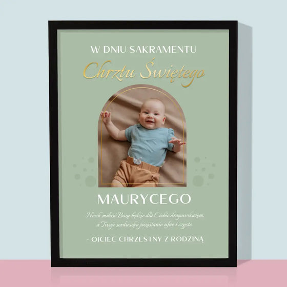 62,99 zł69,99 złCena jednostkowa /NiedostępneZdjęcie i Podpis: Sakrament Chrztu Świętego - Wydruk obramowany - Pion