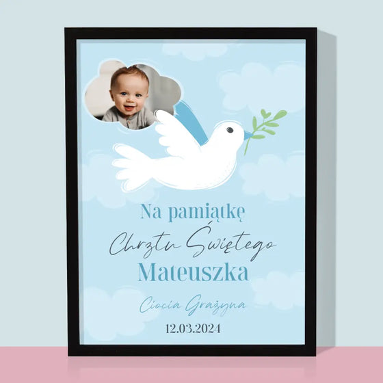 62,99 zł69,99 złCena jednostkowa /NiedostępneZdjęcie i Podpis: Pamiątka Chrztu Gołąbek - Wydruk obramowany - Pion
