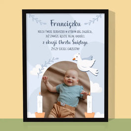 62,99 zł69,99 złCena jednostkowa /NiedostępneZdjęcie i Podpis: Z Okazji Chrztu Świętego Życzenia - Wydruk obramowany - Pion