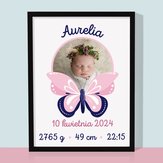 69,99 złCena jednostkowa /NiedostępneMetryczka Dziecka: Motylek - Wydruk obramowany - Pion
