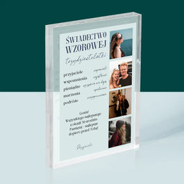 116,99 zł129,99 złCena jednostkowa /NiedostępneFotokolaż: Świadectwo Wzorowej Trzydziestolatki - Blok Akrylowy z Nadrukiem
