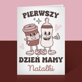 - Imię i Podpis: Pierwszy Dzień Mamy Kawa Mleko - Kartka z życzeniami 19,99 złCena jednostkowa /Niedostępne