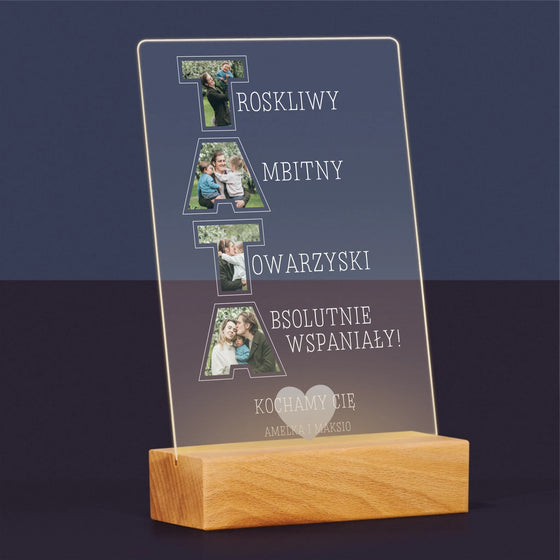 54,99 złCena jednostkowa /NiedostępneSłowo Ze Zdjęć: Dlaczego Kocham Tatę - Wydruk na szkle akrylowym LED