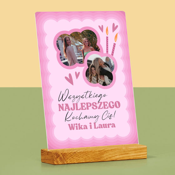 129,99 złCena jednostkowa /NiedostępneFotokolaż: Różowe Urodziny - Wydruk na szkle akrylowym w ramce LED