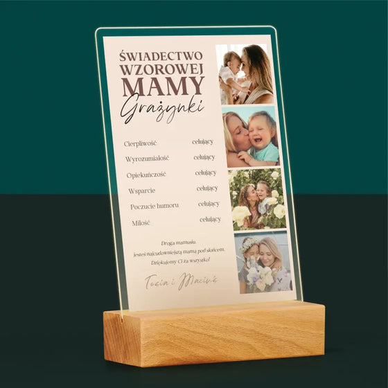 54,99 złCena jednostkowa /NiedostępneFotokolaż: Świadectwo Wzorowej Mamy - Wydruk na szkle akrylowym LED