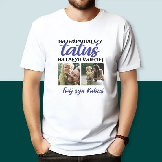 99,99 złCena jednostkowa /NiedostępneZdjęcie I Podpis: Tata Dziecko Rączka - Personalizowana Koszulka Męska