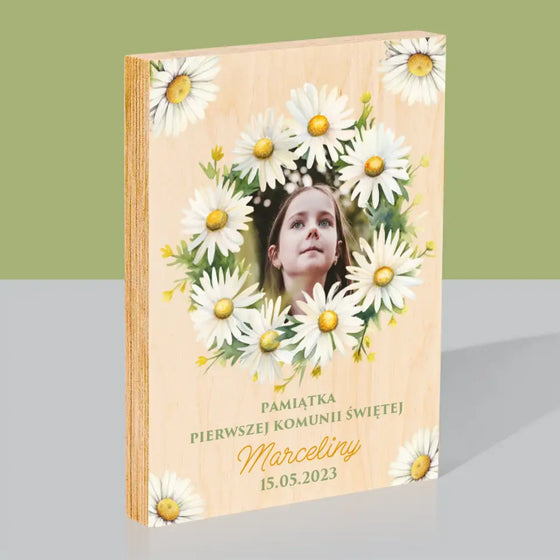 71,99 zł79,99 złCena jednostkowa /NiedostępneZdjęcie i Podpis: Pamiątka Komunii Świętej Stokrotki - Wydruk na drewnie - Pion