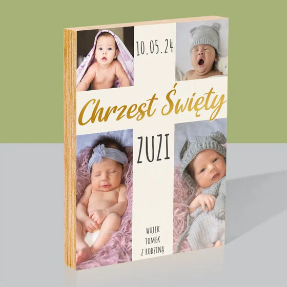 71,99 zł79,99 złCena jednostkowa /NiedostępneFotokolaż: Chrzest Święty Krzyż - Wydruk na drewnie - Pion