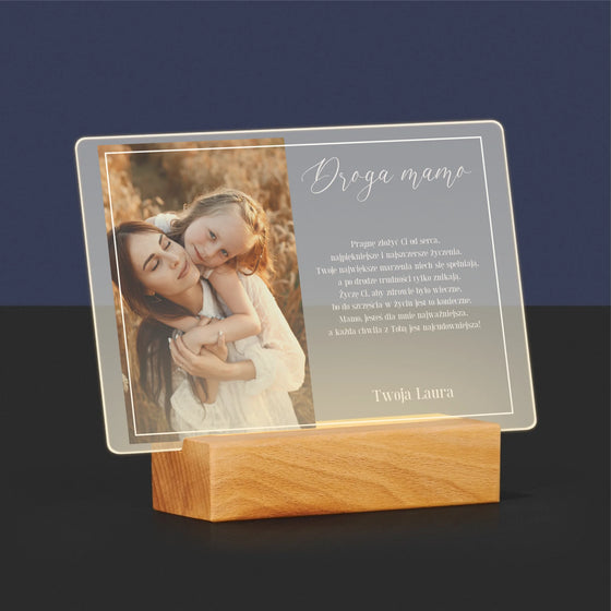 84,99 złCena jednostkowa /NiedostępneZdjęcie I Podpis: Droga Mamo - Wydruk na szkle akrylowym LED Poziom