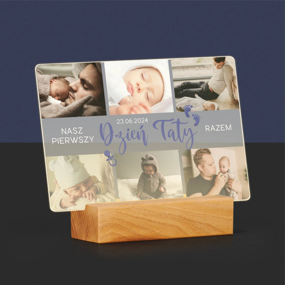 84,99 złCena jednostkowa /NiedostępneFotokolaż: Pierwszy Dzień Taty - Wydruk na szkle akrylowym LED Poziom