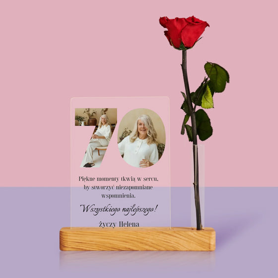 Słowo Ze Zdjęć: 70 Urodziny - Wydruk na szkle akrylowym z różą