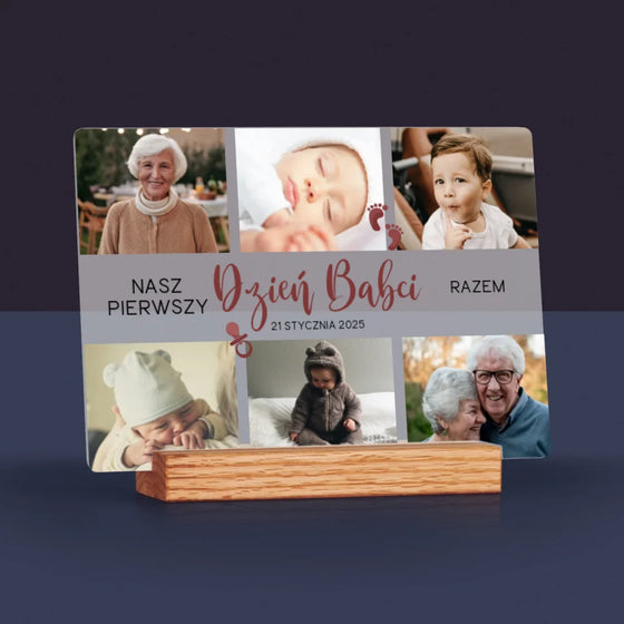 84,99 złCena jednostkowa /NiedostępneFotokolaż: Pierwszy Dzień Babci - Wydruk na szkle akrylowym LED Poziom