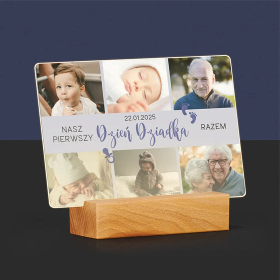 84,99 złCena jednostkowa /NiedostępneFotokolaż: Pierwszy Dzień Dziadka - Wydruk na szkle akrylowym LED Poziom