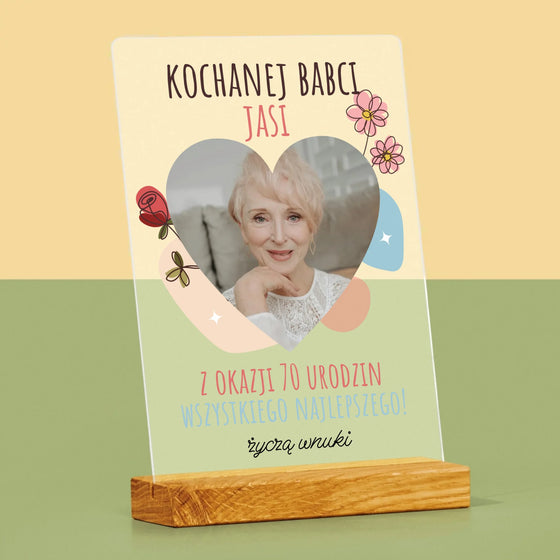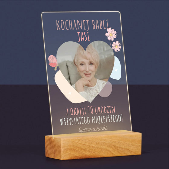 54,99 złCena jednostkowa /NiedostępneZdjęcie I Podpis: Kochanej Babci z Okazji Urodzin - Wydruk na szkle akrylowym LED