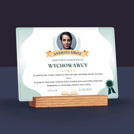 - Zdjęcie i Podpis: Certyfikat Najlepszego Wychowawcy - Wydruk na szkle akrylowym - poziom 84,99 złCena jednostkowa /Niedostępne
