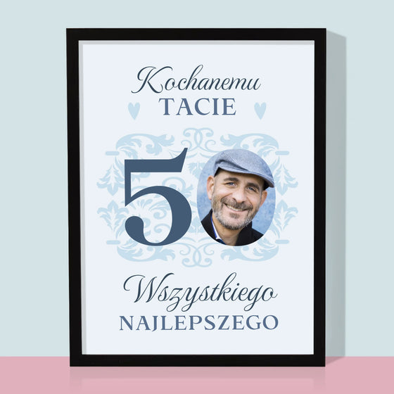 - Zdjęcie I Podpis: Kochanemu Tacie Z Okazji 50 Urodzin - Wydruk obramowany - Pion 99,99 złCena jednostkowa /Niedostępne